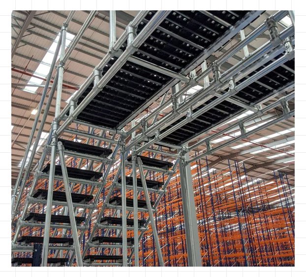 Raised Work Platforms: These are stationary platforms used for working at elevated levels. They are often used in warehouses or factories to reach high shelves, machinery, or equipment. Examples include mezzanines, platforms in factories, or maintenance platforms for equipment.